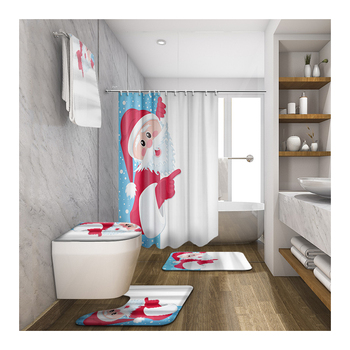عيد الميلاد الحمام ستارة الحمام طقم سجادة/ حصيرة 4 قطع للماء عدم الانزلاق البساط دش ستارة للحمام ديكور عيد الميلاد